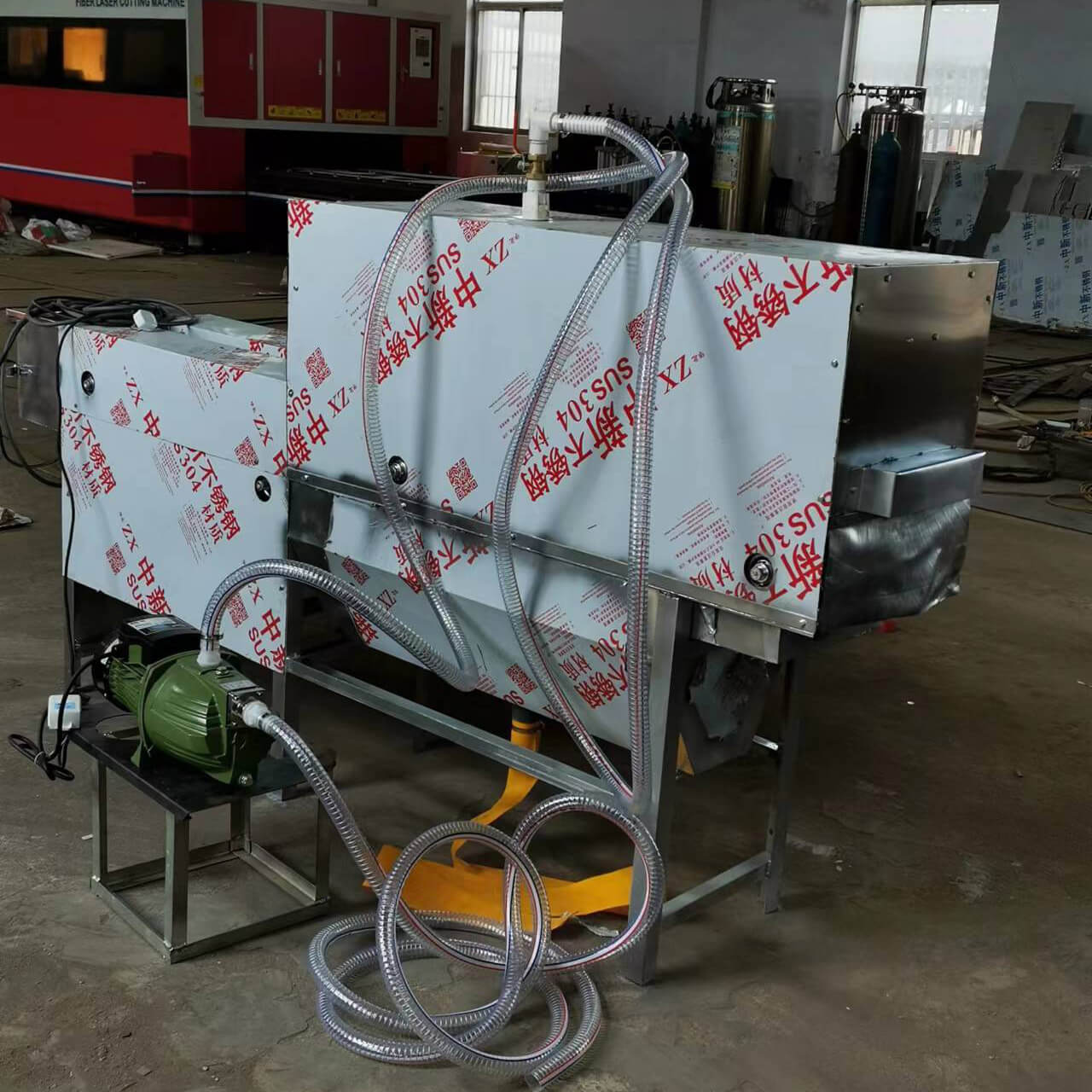 6. Work artificial continuous egg, machine continuous transmission, into the brush cleaning box, brush rotation and pump mixed wash, duck eggs egg cleaning out, in the other end of the egg mouth directly fell into the water, wash duck eggs and eggs stolen goods directly flow in the following box, the bottom of the box has a drain hole, As the dirty water drains away.